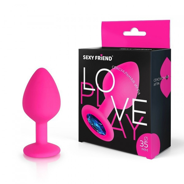 Пробка с синим кристаллом "Sexy Friend" фуксия, M