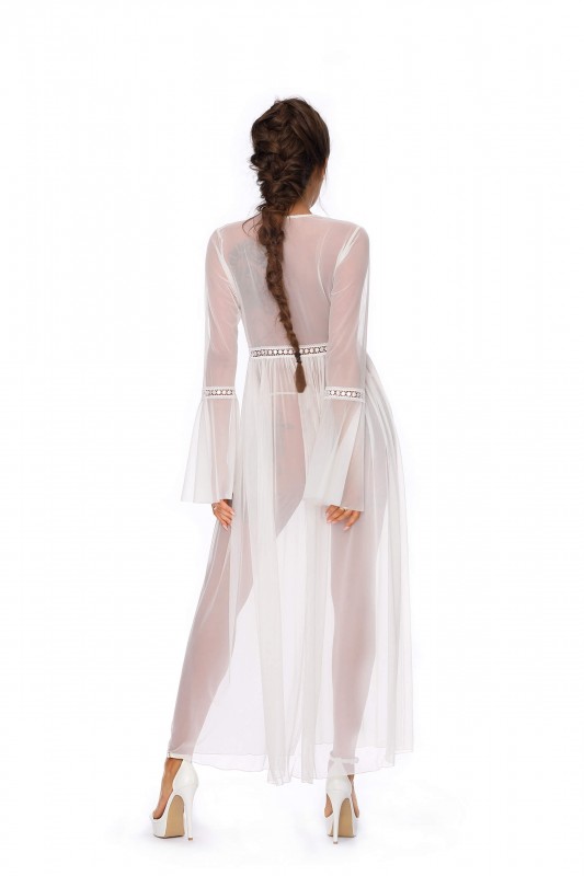 полупрозрачный, длинный расклешенный рукав, кружевная отделка, трусики-стринги, р-р 42-44